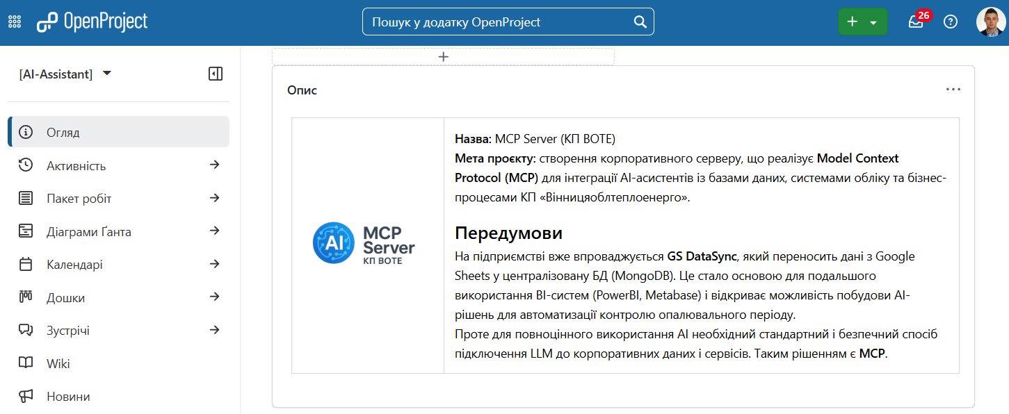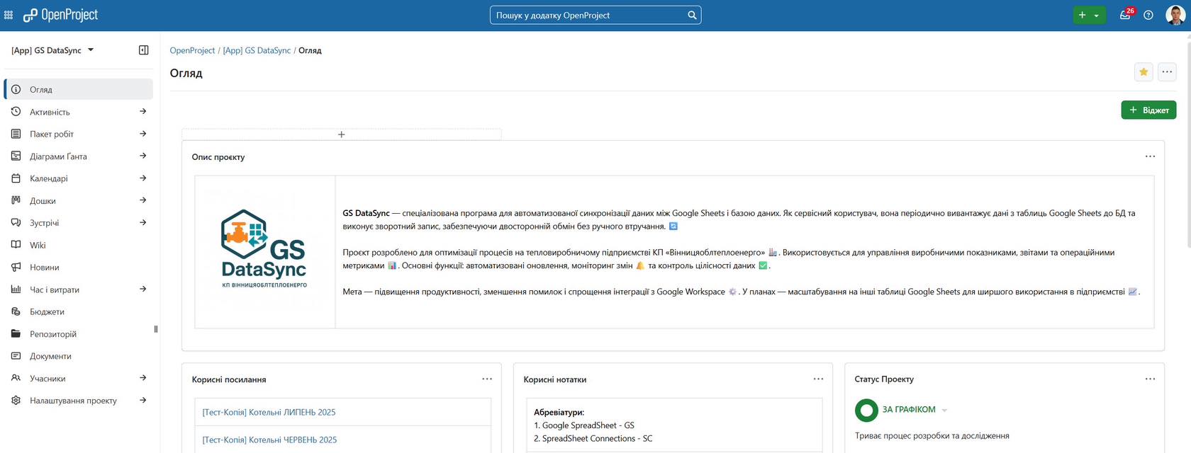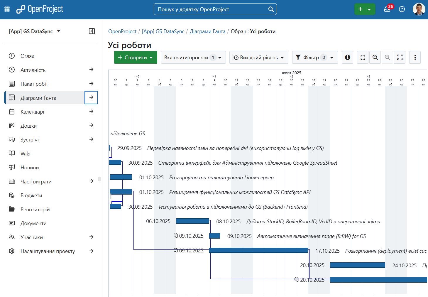 Саме так ми прийшли до впровадження OpenProject — платформи, яка дозволяє зібрати всі задачі, строки, відповідальних і залежності в одному місці. Це означає чітке розуміння реального статусу робіт, контроль дедлайнів, фіксацію рішень після нарад і збереження знань, які не зникають разом зі зміною виконавців.